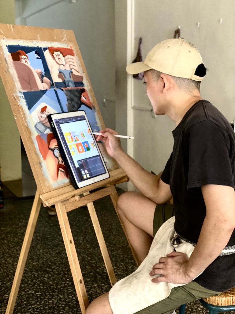 久保:自分の今の生活を漫画にしていこうと思って、今描いているのものがあります。こっち来てすぐぐらいの時に、カエルを主人公にして、台湾の出来事を漫画を描いてたんです。その漫画を小さなフリーペーパーに連載させてもらっていて、いくらかの人にはすごく褒めてもらっていたんですが、自分の描く絵にあまり納得していなくて。少し思い悩んでいる時期がありました。でも悩んで描かないでいても、何も変わらない。だから、とりあえず描いて、できたものを発表する。毎回絵柄が違ってもいいんです。自分の中のゴールに近づくためのブラッシュアップを発表し続けようと思って描いています。今もまだ完成形ではないですが、確実に今まで言葉に出せなかった自分のスタイルというものを、少しずつ言い表せるようになってきています。