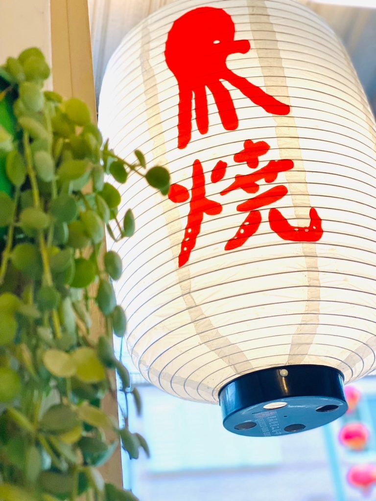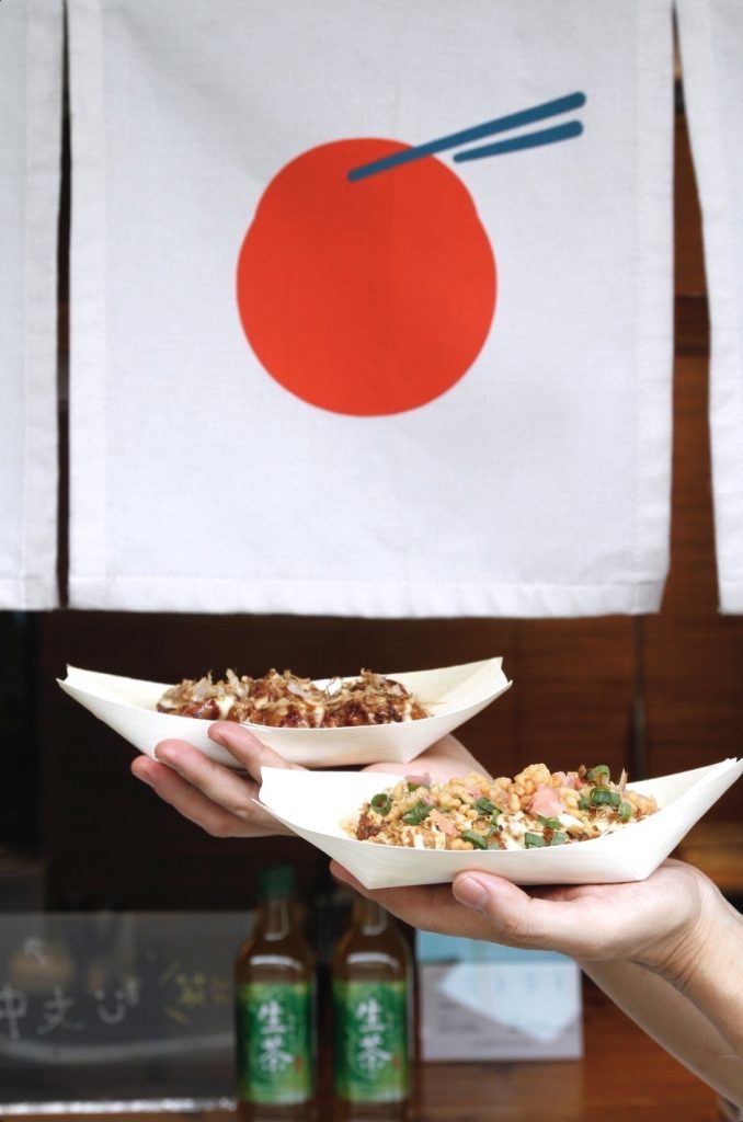 ⎯お店のデザインがすごくく面白いと思います。 日の丸とたこ焼きを合わせていて、めっちゃ可愛いなと思います。あれはクボさんのデザインですか?